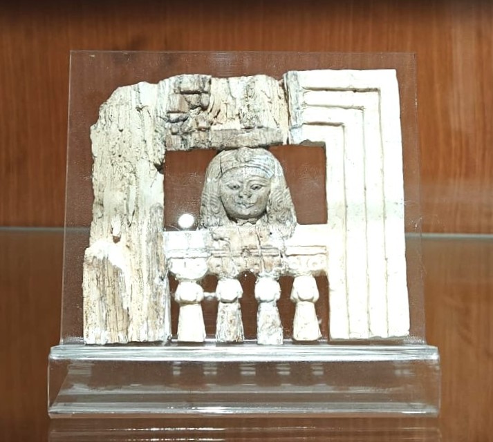 Kuvan norsunluuveistoksessa esiintyy Max Mallowanin löytämä ”Nainen ikkunassa”. On arveltu, että tässä on kurtisaani kurkistelemassa ikkunasta ja odottamassa vierailijaa. Monet näistä veistoksista ovat melko pikkuruisia ja mahtuisivat kämmenelle. Sen lisäksi, että Agatha puhdisti esineitä, hän myös laati yksityiskohtaisia listoja löydöksistä ja sai maineikkaan nimensä turvin myös helposti rahoitusta arkeologisille hankkeille.