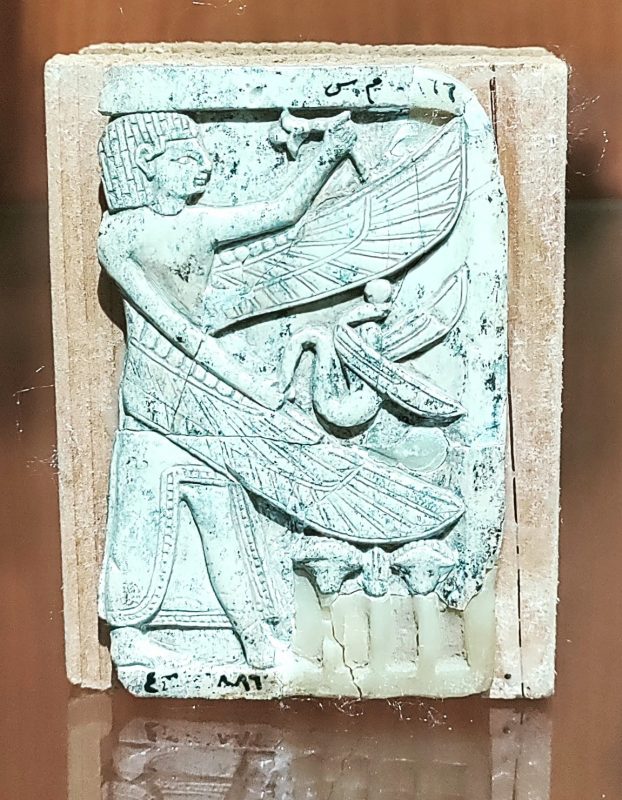 Muinaiset assyrialaiset olivat toki saaneet vaikutteita Egyptistä, sillä tällä nimrudilaisella käärmetaistelijalla on egyptiläistyylinen kampaus. Siivekkäiden kuninkaiden ja djinnien kuvaaminen oli yleistä assyrialaisessa ikonografiassa.